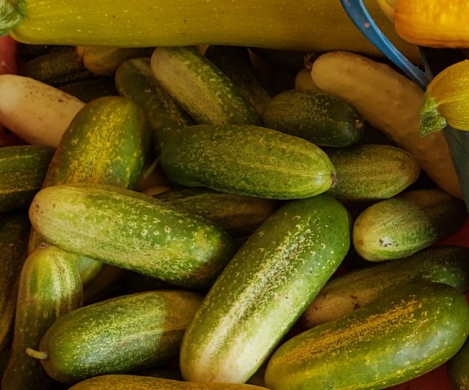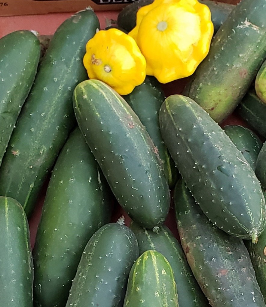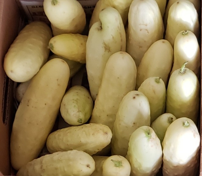 Early Russian – 50-55 days. Introduced in 1854. Pick early for gherkins or matures as 6” sweet cukes. Never bitter. Produces over a long season.