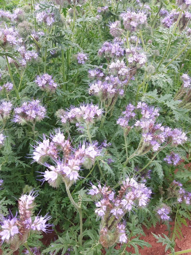 4) Phacelia – Native North American plant which provides a source of high-quality nectar & pollen for bees & pollinating insects. Attractive light purple flower spikes & delicate lacy foliage. I sow it here & there amongst the vegetable crops, as so easy to grow & long season. Also called Purple Tansy.