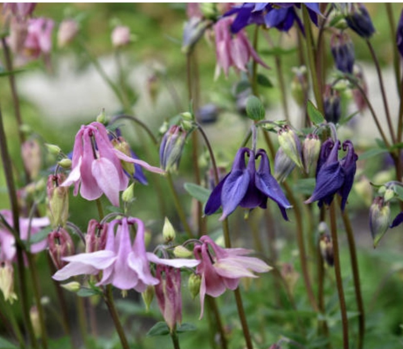 1) House Mix – Beautiful combination of delicate light & darker pink flowers, plus the striking dark purple shades, makes a showy variety mix of Columbine colours.