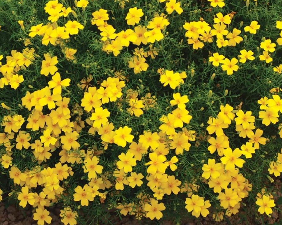 2) Lemon Gem – These sunny yellow rock garden marigolds are 12” tall. Best know for their edible flowers & pleasant citrusy fragrance. Enhance your dining pleasure & stimulate your senses with sight, smell & taste with these little beauties!