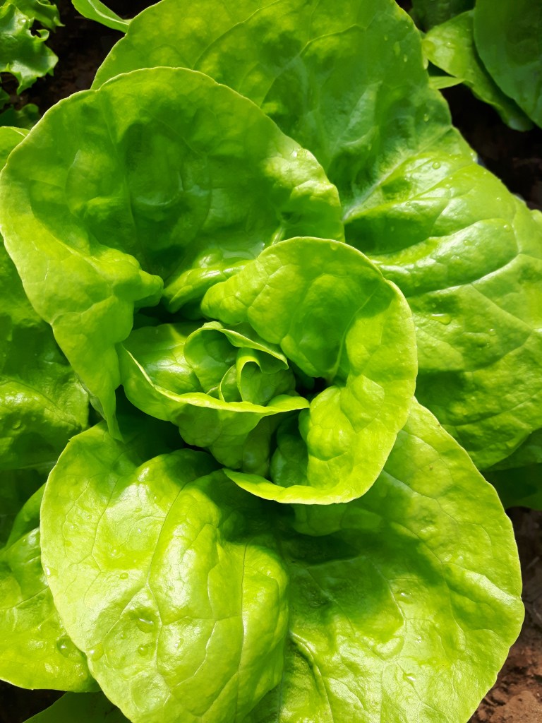 Olga – 65 days. Elegant lime-green glossy, cup-shaped slightly fringed leaves with big hearts. Very sweet, crisp and nutty with a buttery hint. Can stand up to considerable heat before it reluctantly bolts.in August. I would really consider it an ‘all season’ variety!