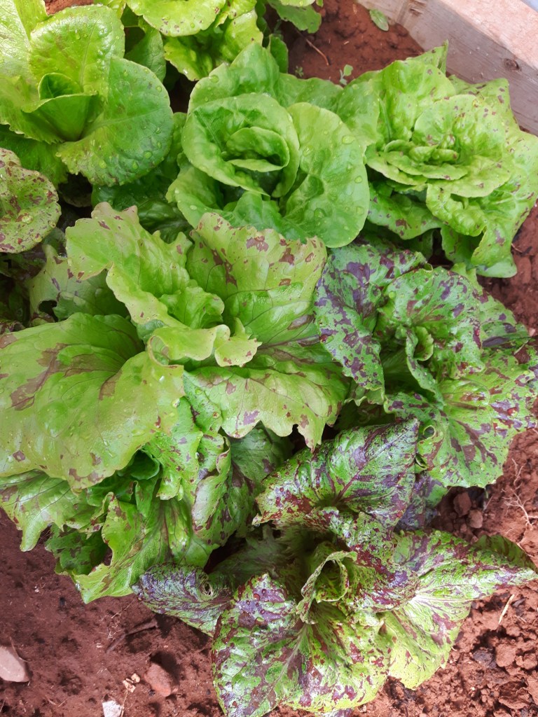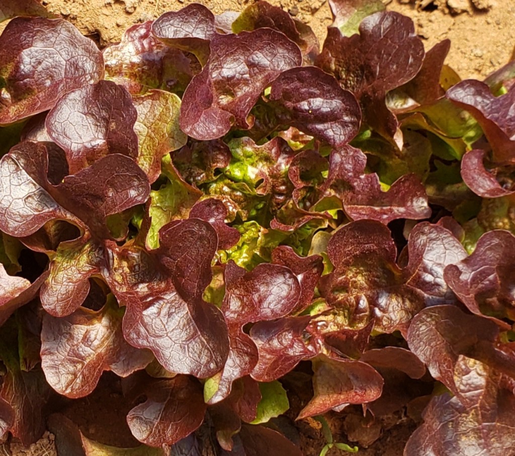 Italian Red Perella – 50 days.Attractive loose leaf butterheadwith sweet green leaves tinged with dark ruby bronze. Very tasty! Readily self sows & new plants emerge very early.