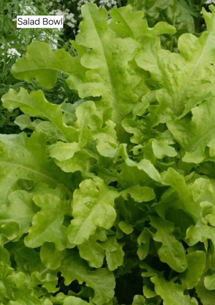 Salad Bowl – 60 days Gorgeous soft frilly deeply cut oakleaf shape with excellent flavour form into large, lime-green rosettes which resist bolting for a long time into summer & no bitterness. Rapid cool-weather growth makes it a prime candidate for spring cold frame growing. BEST!!