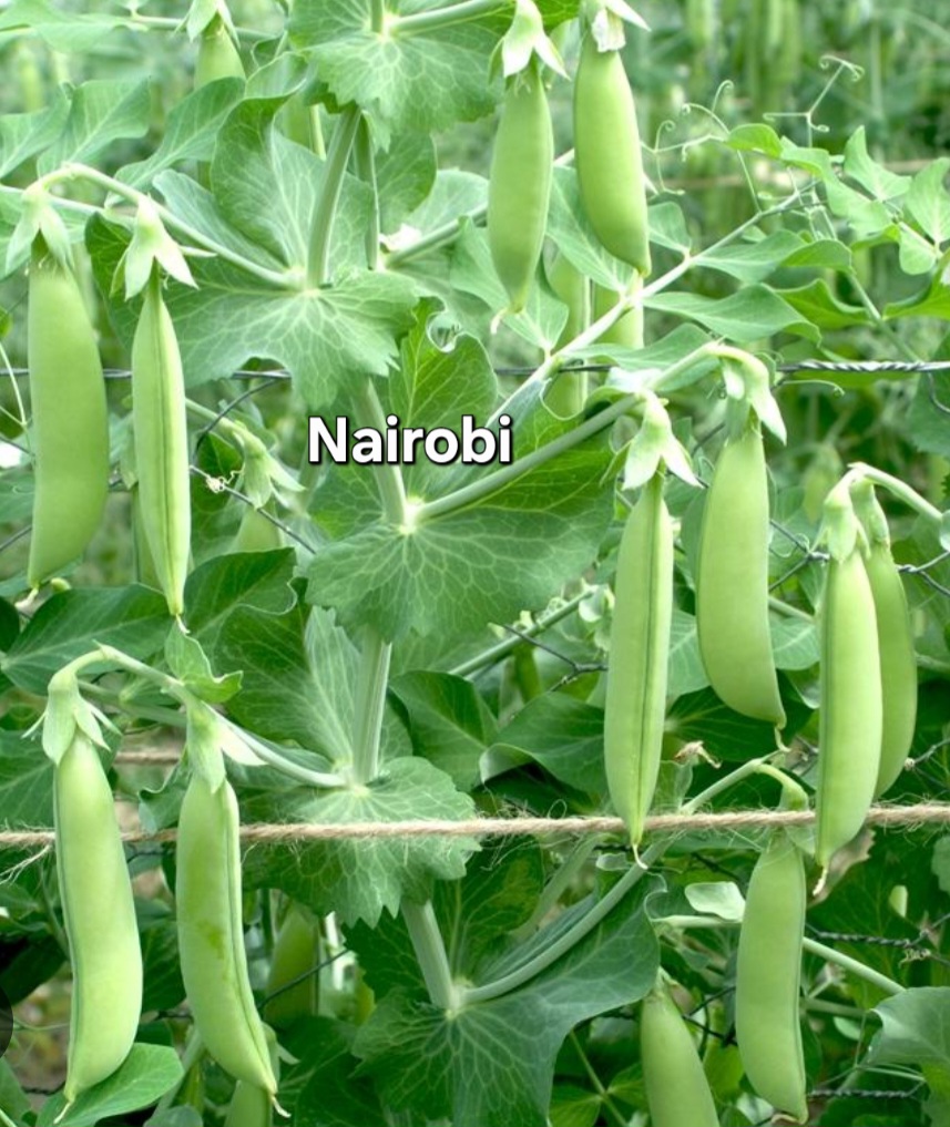 3) Nairobi –60 days. Top quality stringless 3- 3.5” snap pea with sweet dark green crunchy pods. Taller 24 – 30” bush type could benefit from some support. High yielding plants have excellent tolerance to powdery mildew.